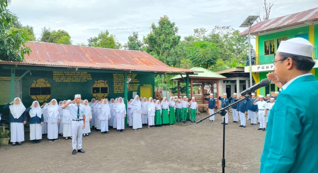 Kegiatan yang digelar di halaman utama pesantren ini berlangsung dengan khidmat dan penuh semangat. Upacara bendera terpadu ini bertujuan untuk menanamkan nilai-nilai kebangsaan sekaligus memperkuat persatuan di kalangan santri.